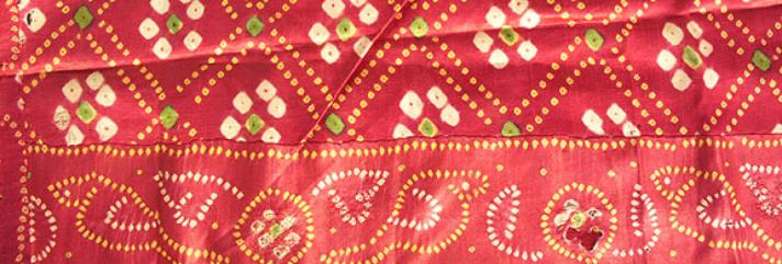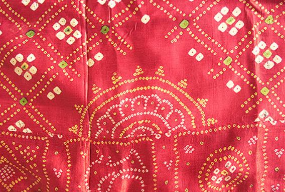 The shawl was tye-dyed in the bandhani technique with small resist dyed spots by wrapping thread around the tip of a small nail to form the thousands of tiny circles or spots that form the designs on the shawl. "Bandhani" is the Indian word from which we derived the English word "Bandana" for tye-dyed cloths. This is a top-shelf piece of Bandhani tye-dye that will please the new owner for years to come, either displayed or worn. Enjoy. $550