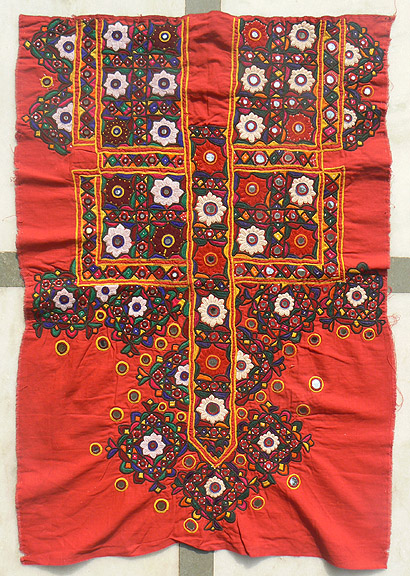 Old embroidered dress front or choli from Kutch India. This textile is a beautiful old piece of Kutchi