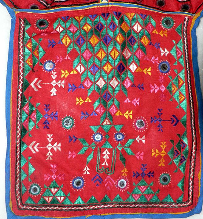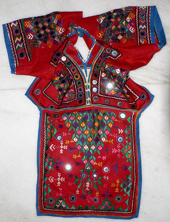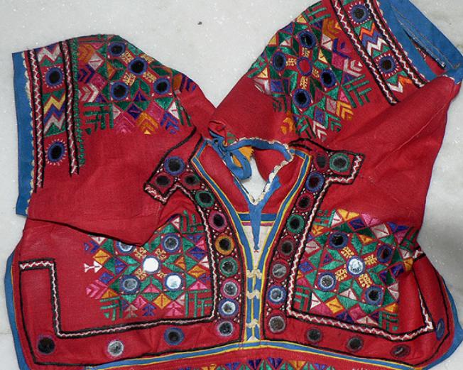 old girl. Beautiful embroidered floral designs and peacocks cover the entire choli. The choli is