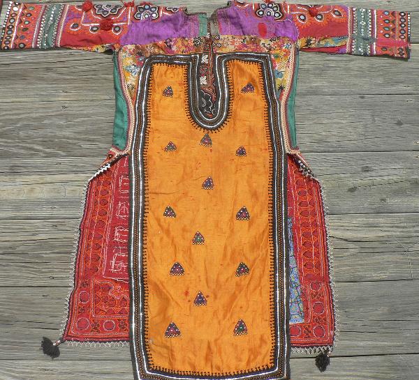 is a beautiful old Kutchi (Indian) embroidered dress or choli, probably made and used by a bride
