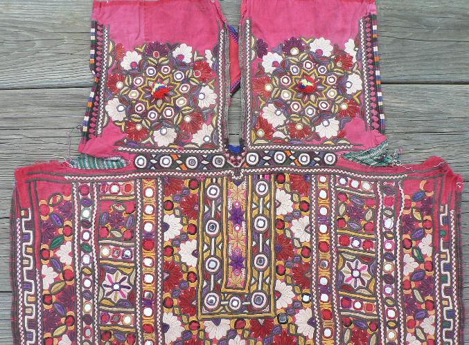 Old embroidered dress or choli front from Kutch India. This textile is a beautiful old Kutchi
