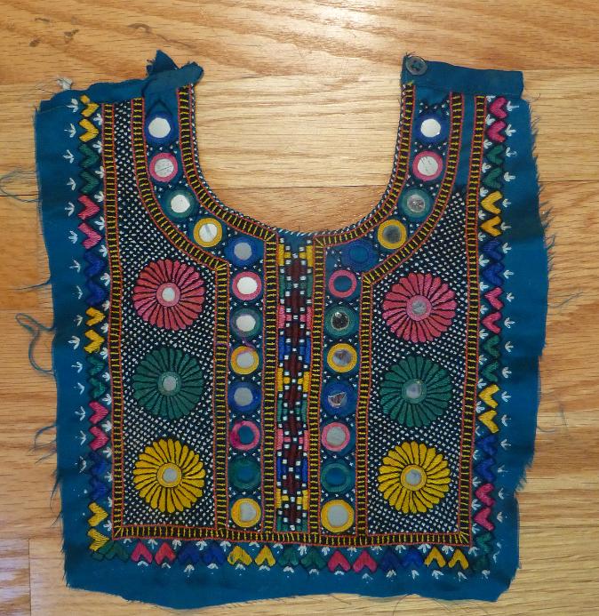 Old embroidered dress front from Barmer district, India. This textile is a beautiful old piece of