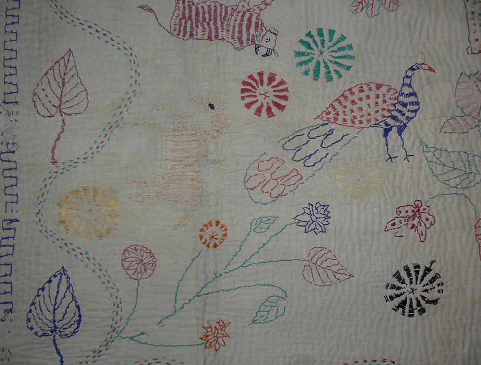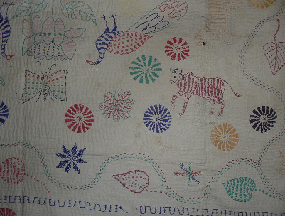 flowers. Playful kinetic design. Bengal is known for its fine Kantha work made from cotton cloth that is quilted and embroidered