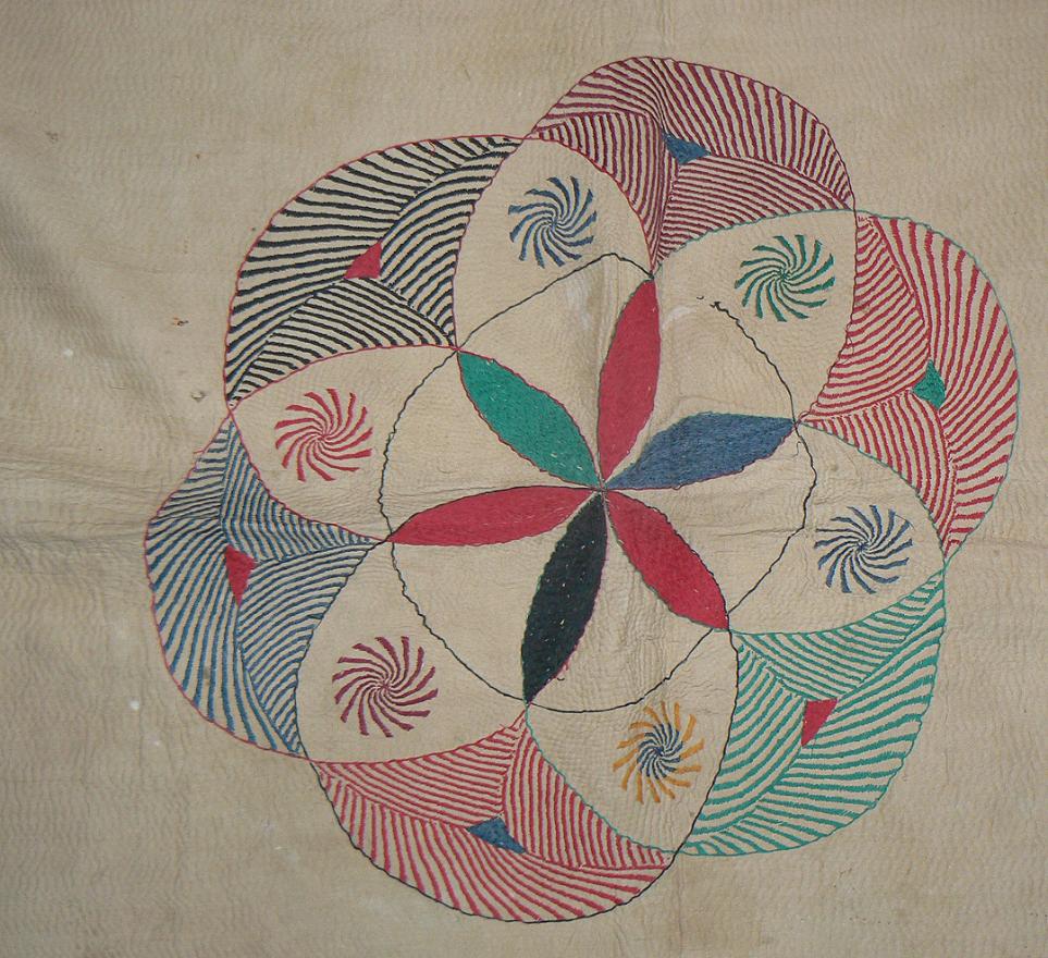 Bengal is known for its fine Kantha work made from cotton cloth that is quilted and embroidered with cotton thread and running
