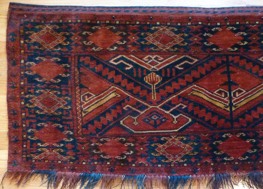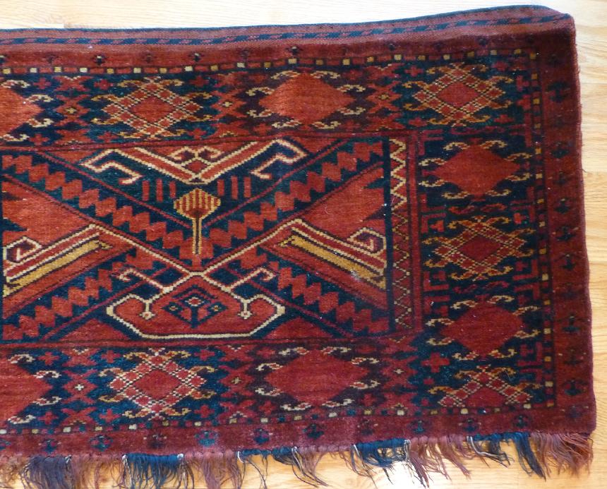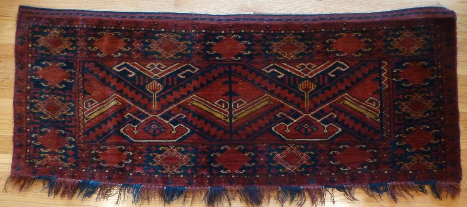 57 x 21 inches. Excellent condition. Thick pile. Floppy handle.