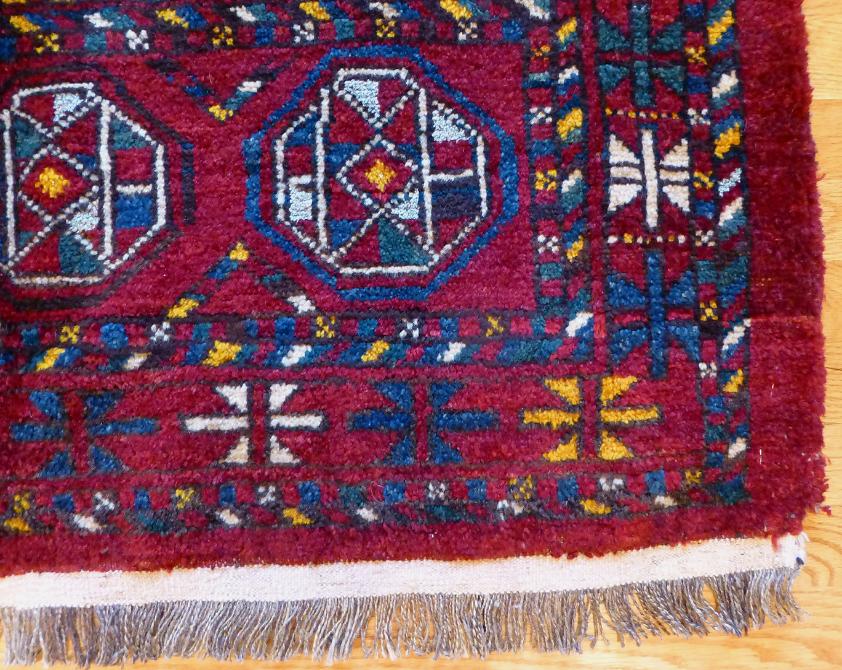 44 x 20 inches. Full pile. Light blue silk highlights in the centers of the guls. Full thick floppy pile.