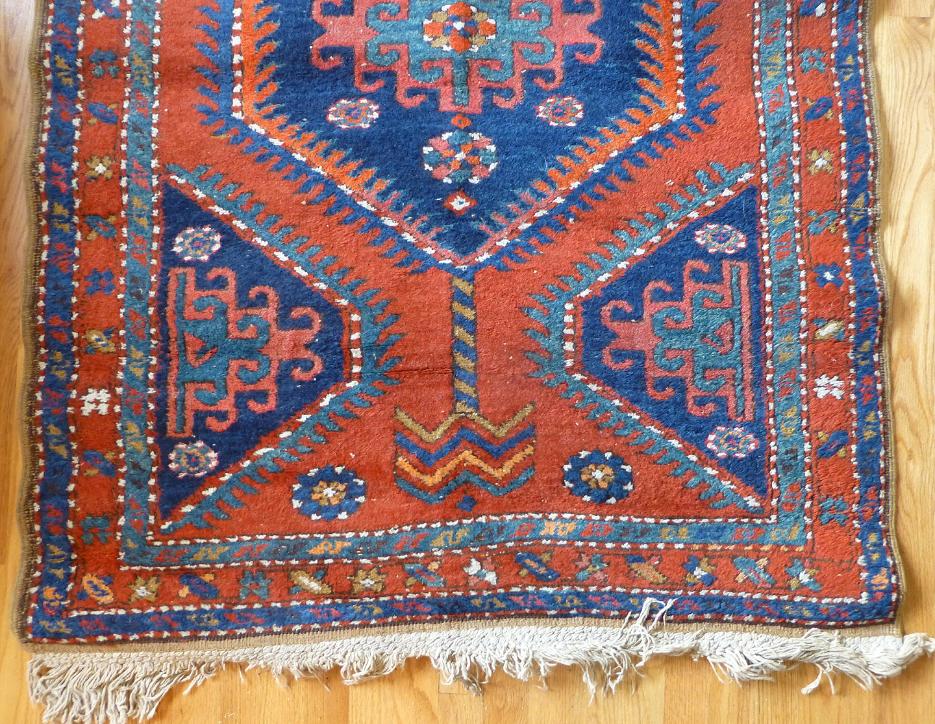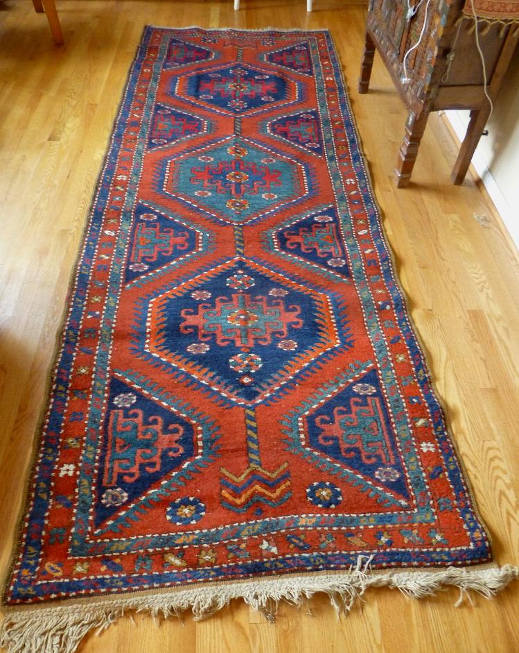 122 x 45 inches. Medium to full pile throughout. Very good condition. Original kelim ends are still