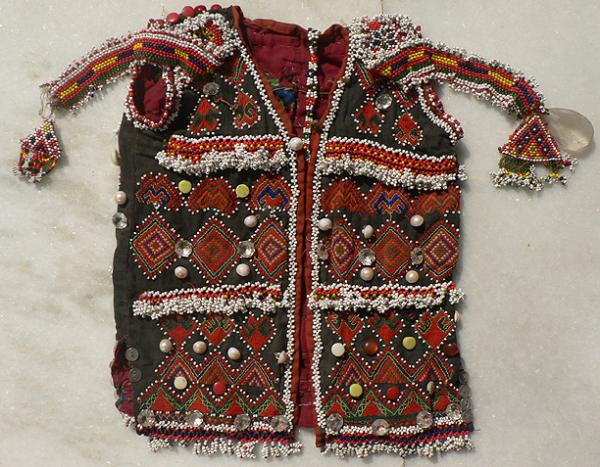 intricate beadwork, baubles and buttons. Great beadwork attachments. Early to