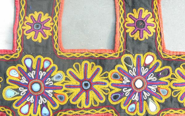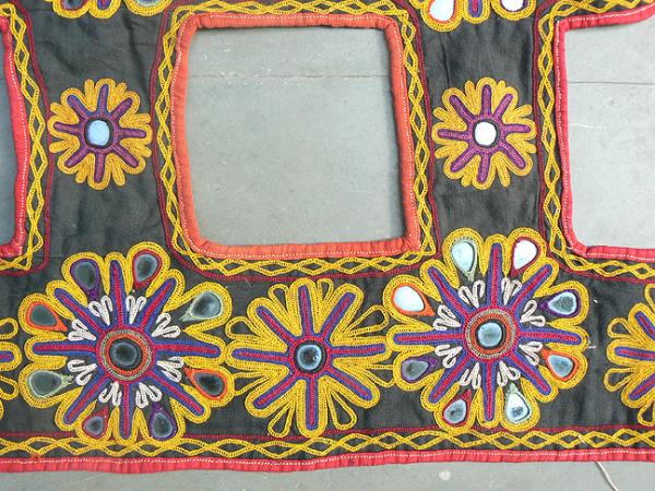 Old embroidered Indian camel trapping embroidered on a piece of
