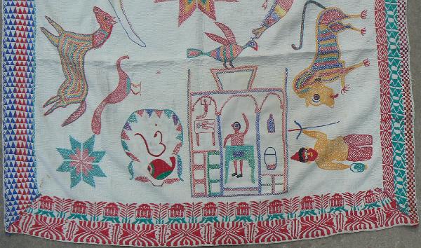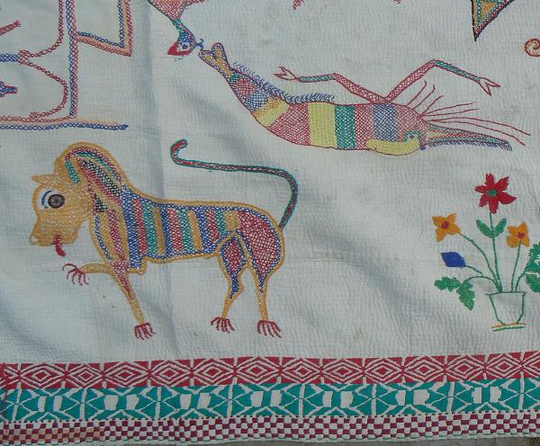 Kantha work made from cotton cloth that is quilted and embroidered with cotton thread and