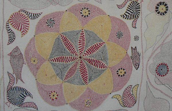 fine Kantha work made from cotton cloth that is quilted and embroidered with cotton thread and